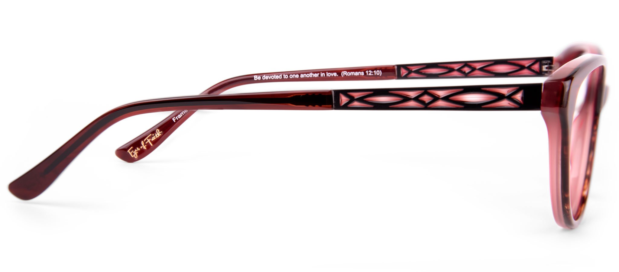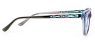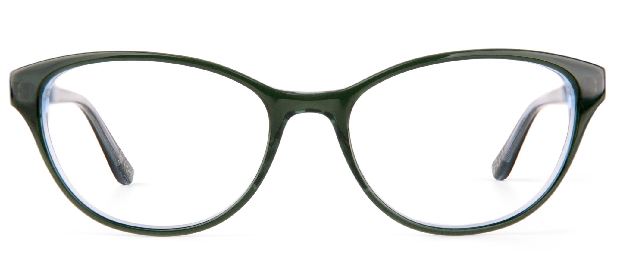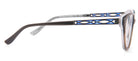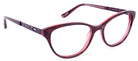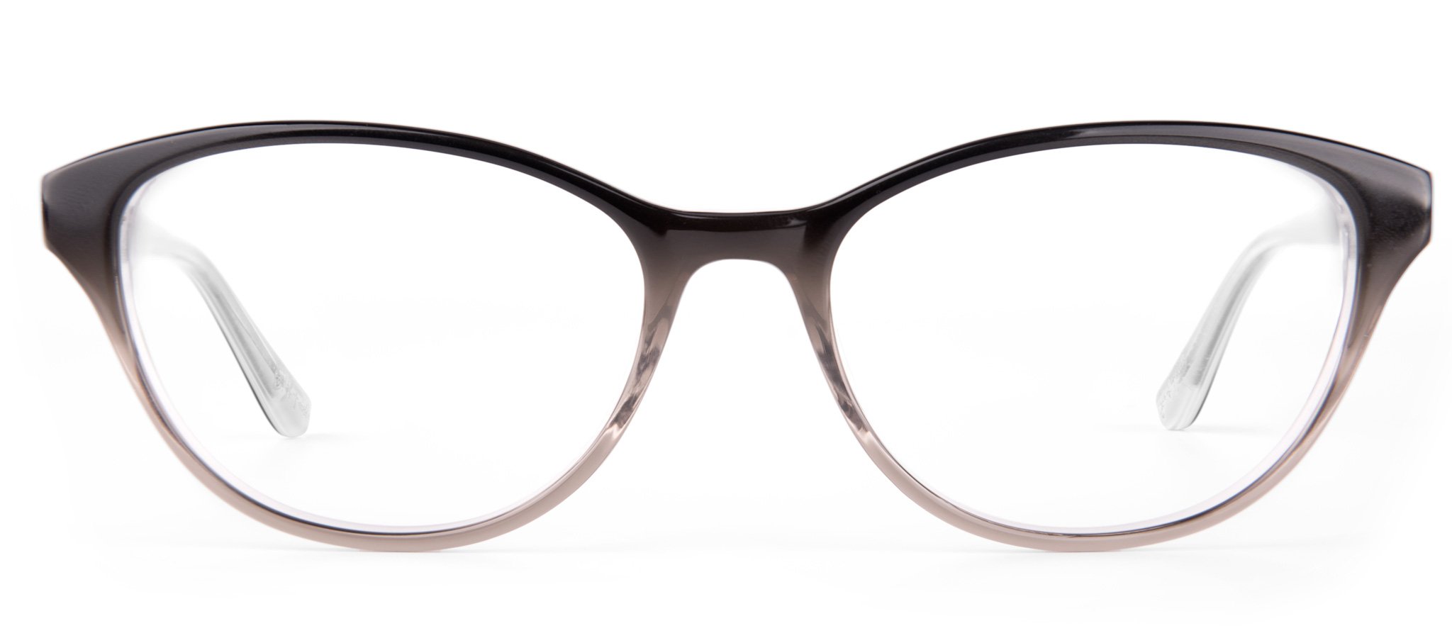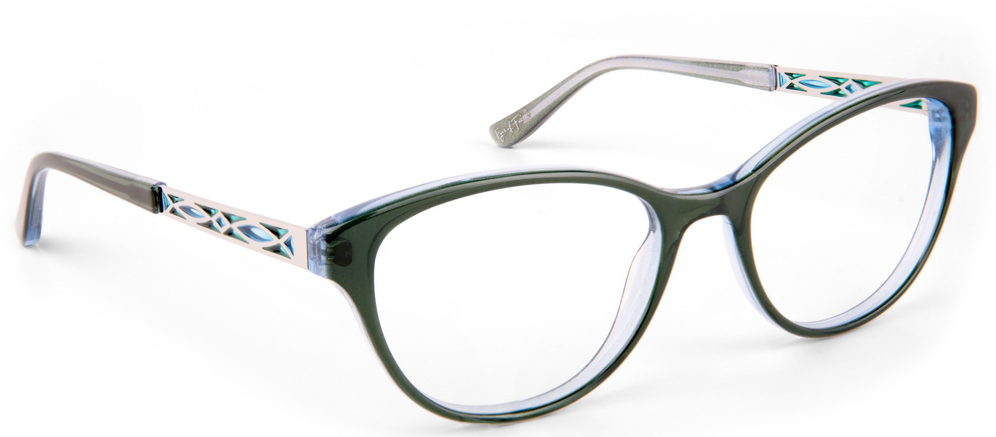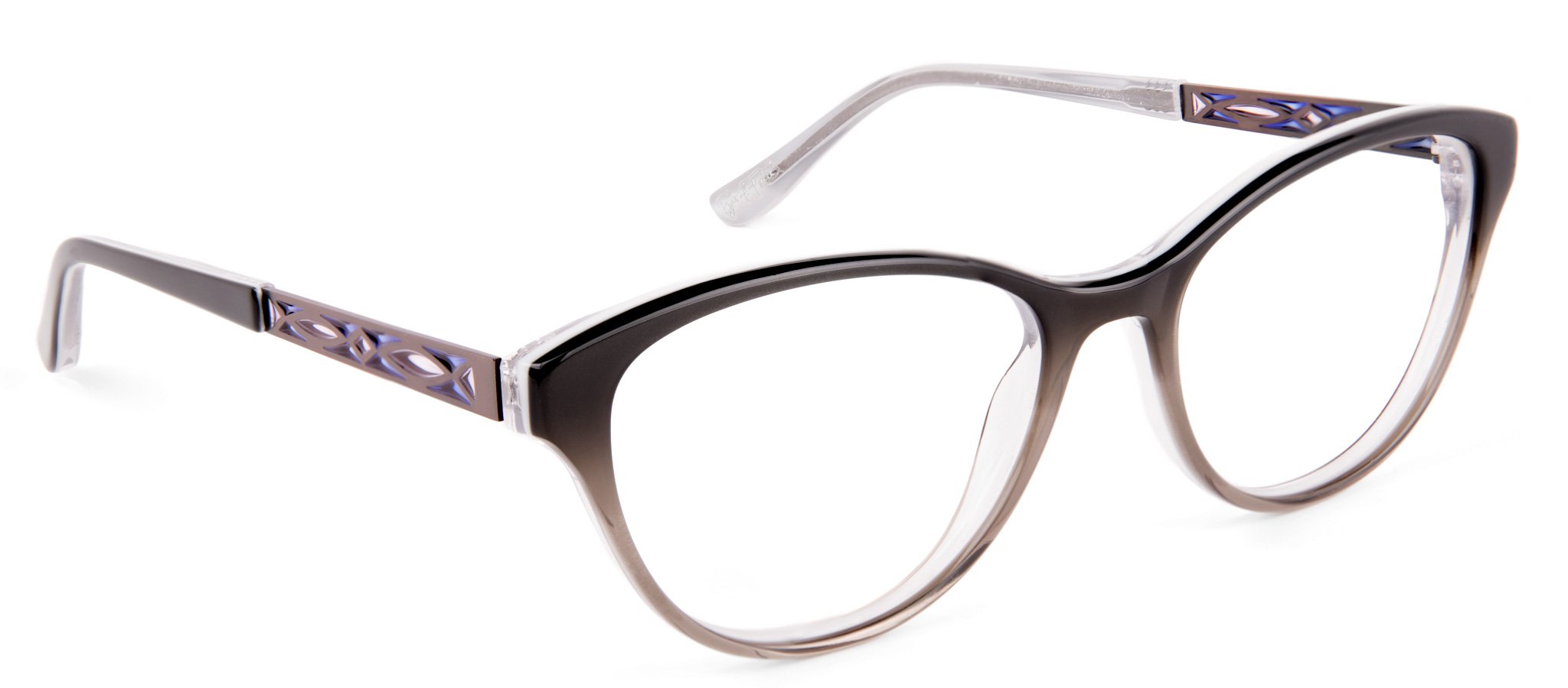 Flattering cat eye shape highlighted by an inner layer of subtle sparkles and glamorous polished-silver temples