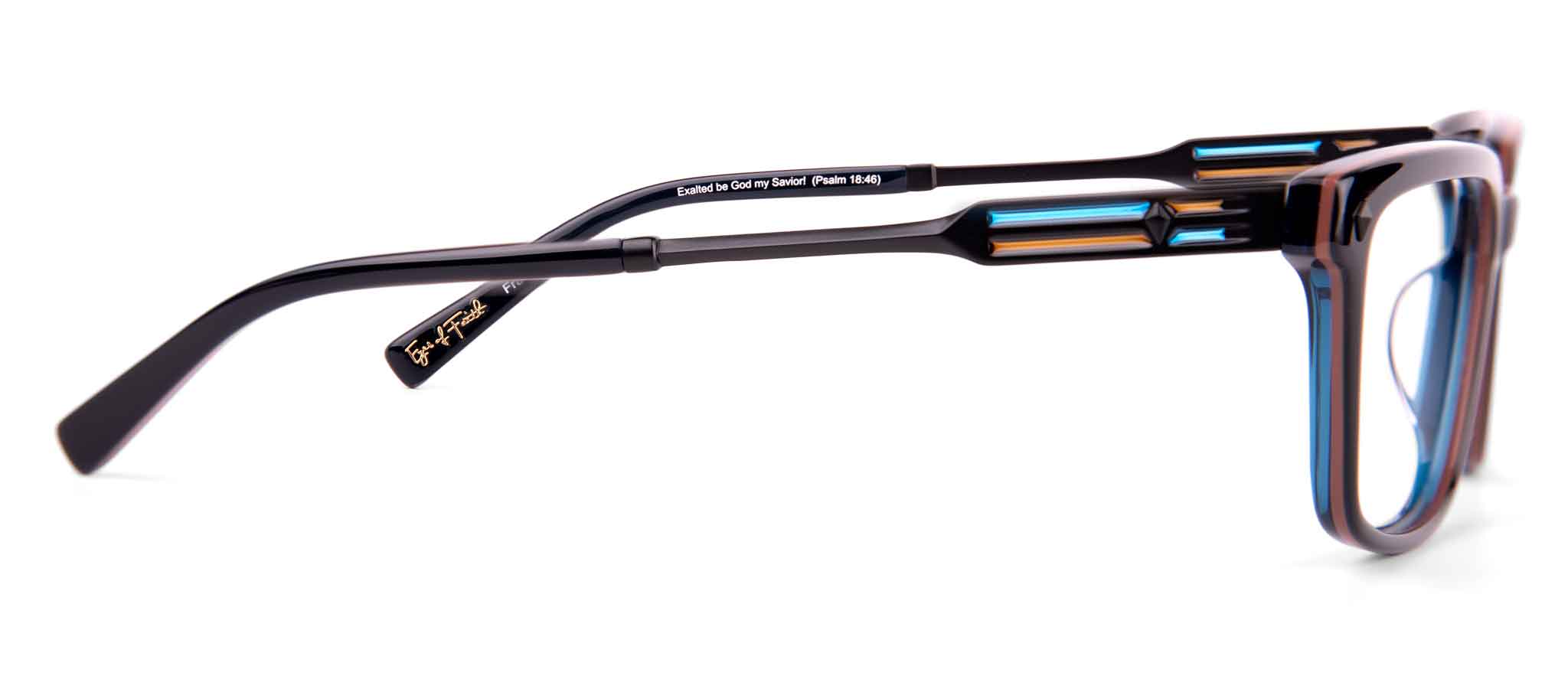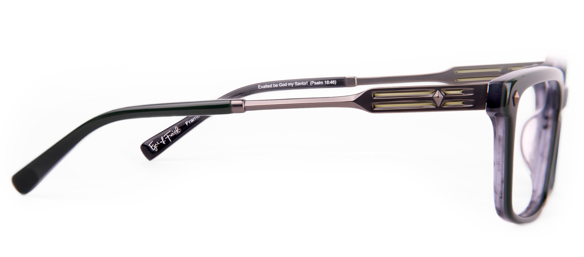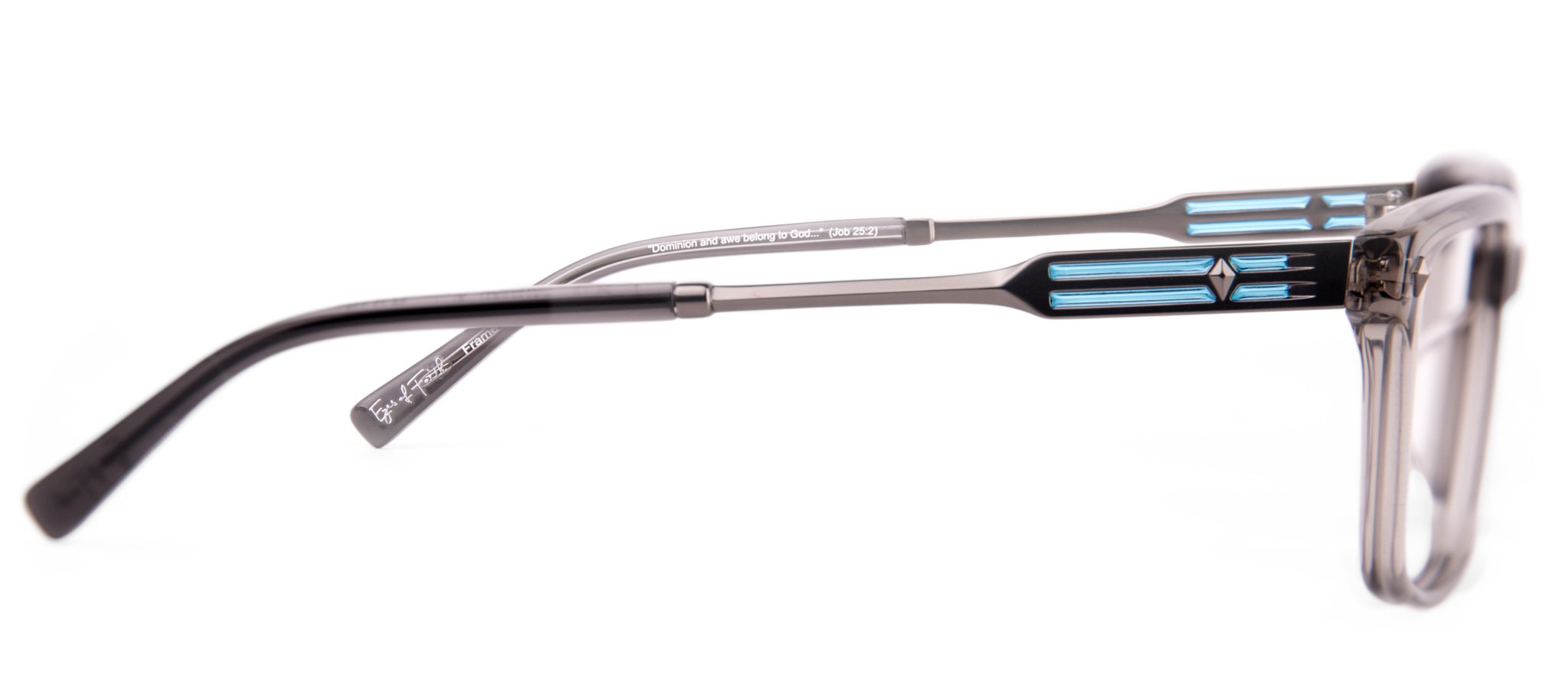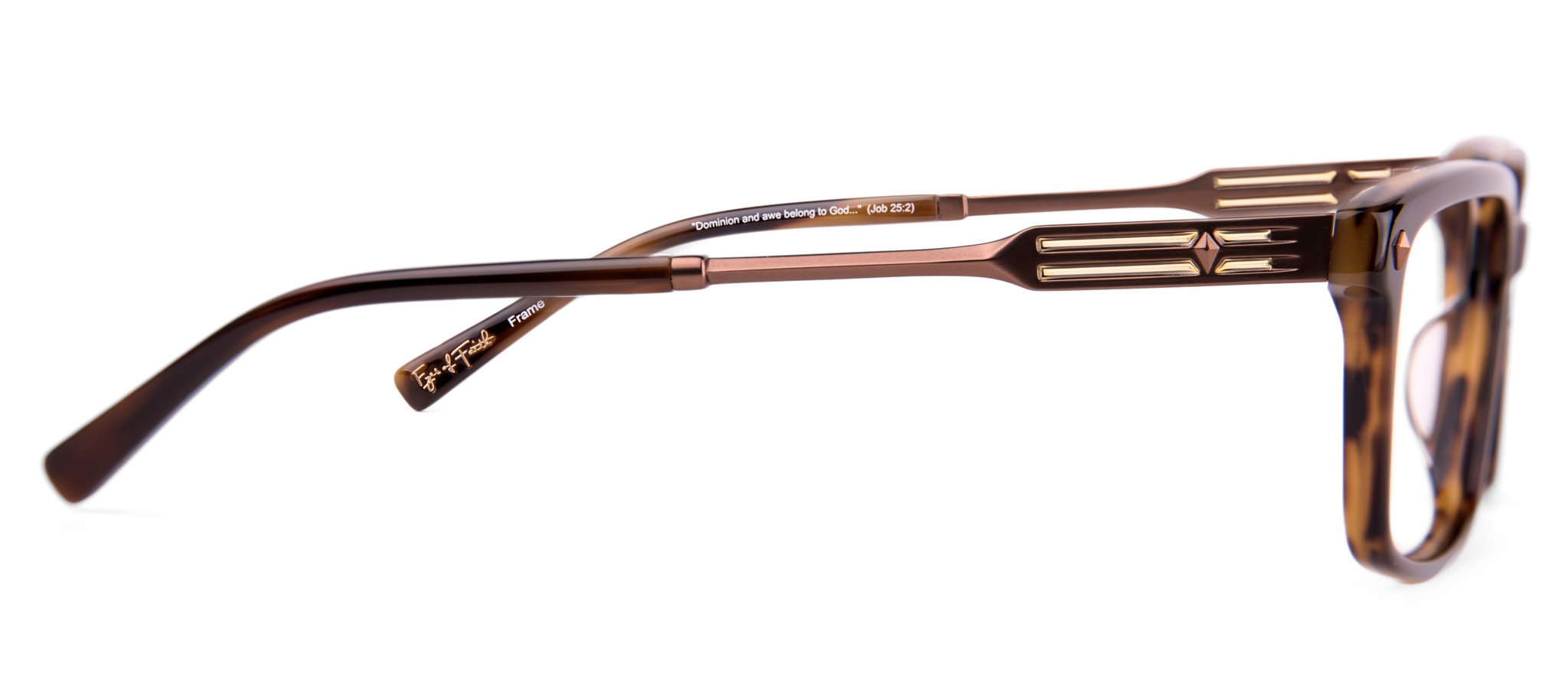 • Custom beveled temples with 'stained glass windows' that form a subtle cross
