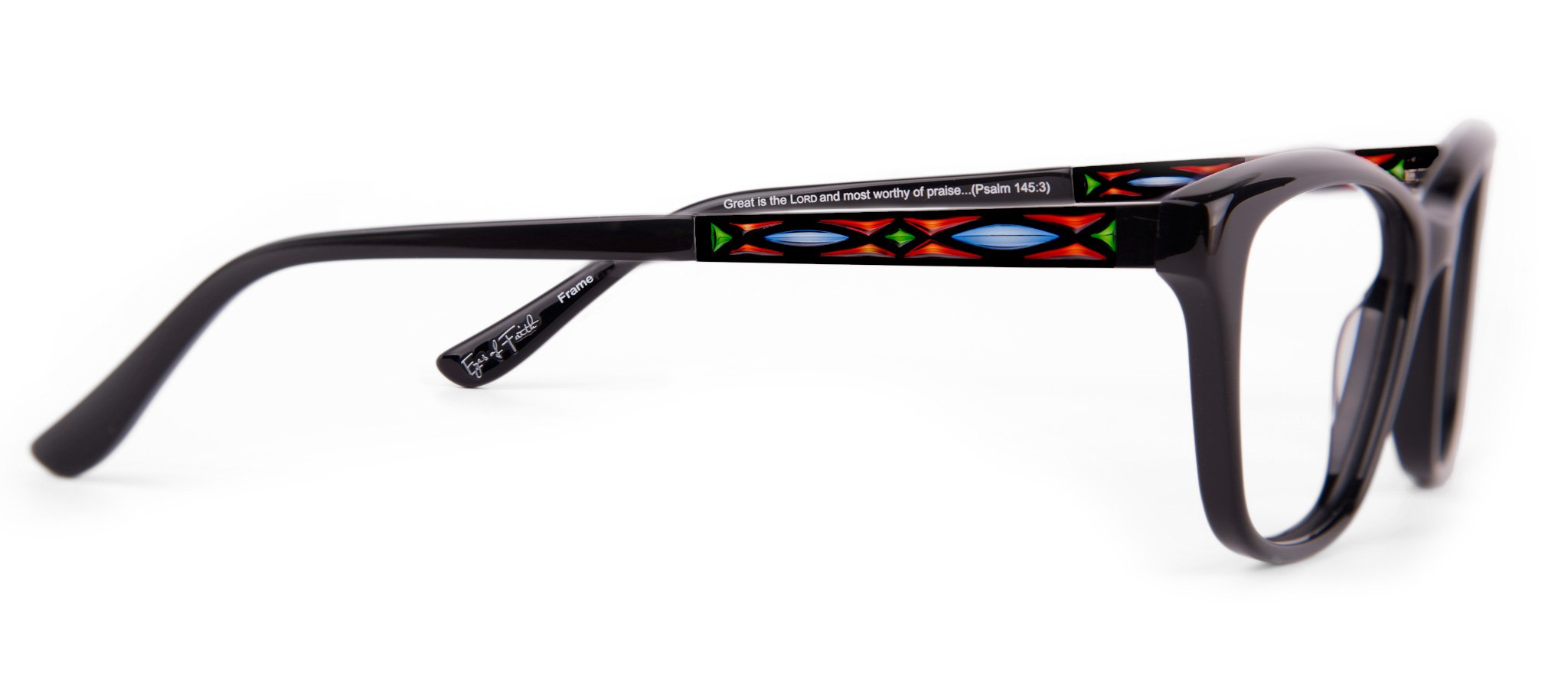 - Custom temple pattern with intricate 'stained glass windows' framed in an ichthys design