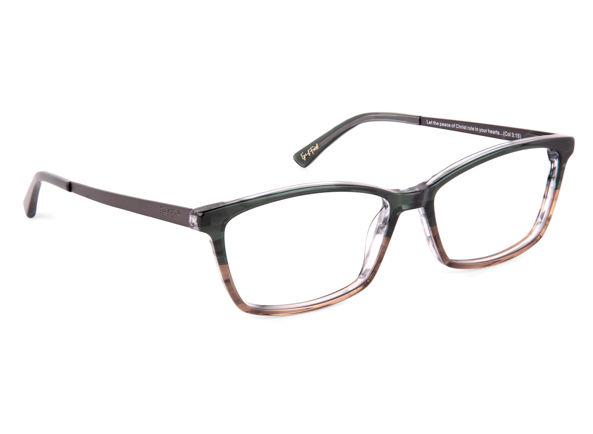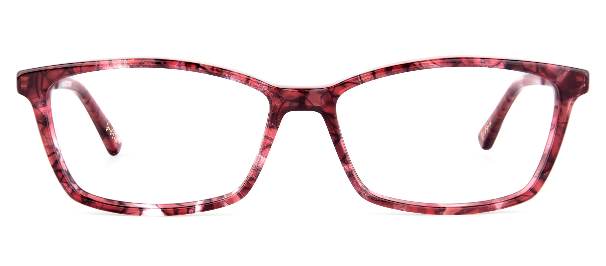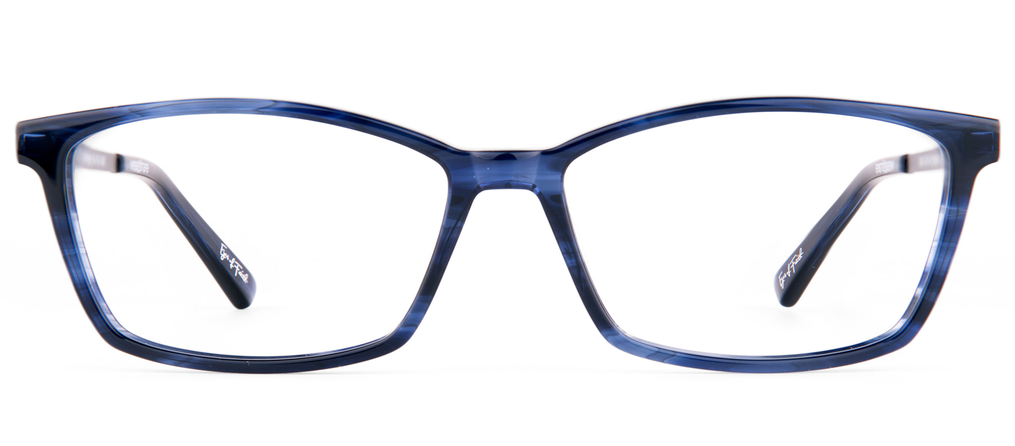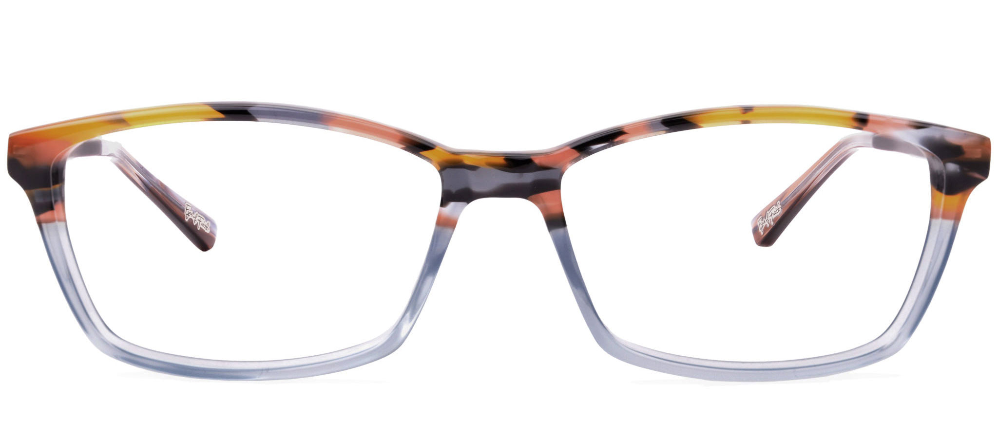 - A delightfully-arched brow line elevates this timeless rectangular shape
